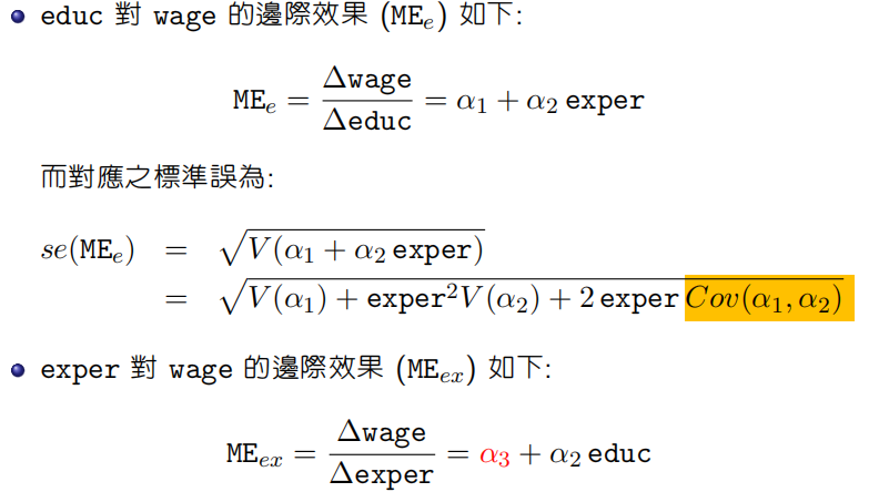 小米想吃辣 发表于 2019-6-5 21:03 黄老师,我想问下您的ppt里面计算包含交互项的边际效果之标准误时,图中Cov(α1,,α2),这一项在回归结果中 ...