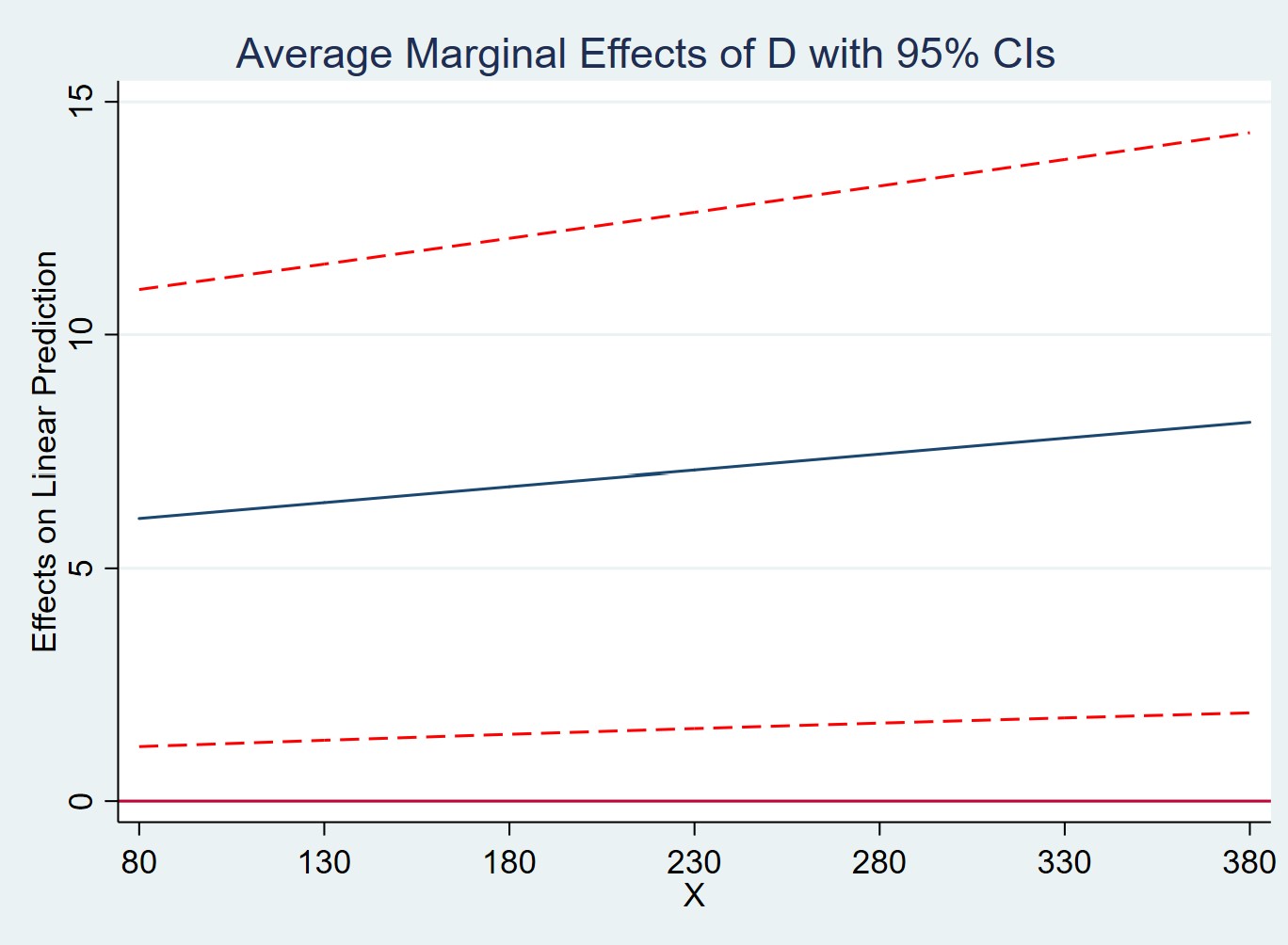 margins, dydx(D) at(X=(80(50)400))