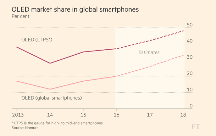 Even Japan Display, which for a long time flew the flag for liquid crystal display technology, has been forced to change its tune. In the final weeks of 2016 the screen maker secured a $640m injection from a government-backed fund to push into OLED.