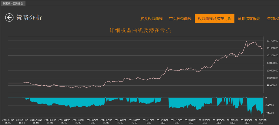 function MTM1(n1,n2,n4) % MTM动量指标.%获取目标资产信息targetList = traderGetTargetList(); % 在RunBackTest中选择好的标的.%获取账户信息HandleList = traderGetHandleList();%=================================================================% RunBackTest的参数设置% n1=12; % 前n1天的收盘价 % n2=6; % MTM的n2日平均% n4=2; % 几倍ATR%=================================================================% 定义持有的账户为全局变量global holdingList;if isempty(holdingList) % 判断cc是否为空值 holdingList(1).Market=0; holdingList(1).Code=0; holdingList(1).OpenBar=0; holdingList(1).OpenPrice=0; holdingList(1).Sharebum=0; holdingList(1).StopLoss=0;end% 定义可用金额global available;if isempty(available) % 判断cc是否为空值 available=100000000;end% 定义初始金额,每只股票的最大仓位为初始资金的1/300initial=100000000;initialeach=initial/length(targetList);k1=0;%------------------------------------------------------------------------------------------------------------------------------------------------------------------------------for i = 1:length(targetList) % 每个股票过一遍 % lags为策略需要往前获取多少天 lags=n1+n2+2; %策略中每次取数据的长度 barnum=traderGetCurrentBar(targetList(i).Market,targetList(i).Code); % K线的序号,后面会增加,前面的值对应的日期固定. % 数据长度限制,排除了前lags根k线 if(barnum<lags) continue; end % 策略开始部分 [time,open,high,low,close,volume,turnover,openinterest] = traderGetKData(targetList(i).Market,targetList(i).Code,'day',1, 0-lags, 0,false,'FWard'); if length(close)<n1+n2+2 continue; end if time(end)>=datenum('1-Jan-2014') if length(close)<n1+n2+2 continue; end % MTMMA MTM=traderMTM(n1,targetList(i).Market,targetList(i).Code,'day',1, 0-lags, 0,false,'FWard'); MTMMA=tsmovavg(MTM,'s',n2,1); % 买入信号: a=MTM(end-1)<MTMMA(end-1) && MTM(end)>MTMMA(end); if a k1=k1+1; stockList(k1).Market=targetList(i).Market; stockList(k1).Code=targetList(i).Code; stockList(k1).Price=close(end); [ATR1, ~]=traderATR(14,targetList(i).Market,targetList(i).Code,'day',1,0-lags,0,false,'FWard'); stockList(k1).ATR=ATR1(end); end endend%--------------------------------------------------------------------------------------------------------------------------------------------------------------------------------------% 判断股票池里面的股票是否要买入,买入多少手if k1~=0 for i=1:length(stockList) % 等权重买入% sharenum=floor(initialeach/stockList(i).Price); % 设置每只股票的交易手数,使得最大的亏损不大于初始账户的 n2%. sharenum=floor(stockList(i).Price*initialeach/stockList(i).ATR/10000); % 获取当前bar序号 barnum=traderGetCurrentBar(stockList(i).Market,stockList(i).Code); %获取当前仓位 [marketposition,~,~]=traderGetAccountPosition(HandleList(1),stockList(i).Market,stockList(i).Code); if marketposition ==0 && (sharenum*stockList(i).Price)<=1*available && time(end)>=datenum('1-Jan-2014') orderID1=traderBuy(HandleList(1),stockList(i).Market,stockList(i).Code,sharenum,0,'market','buy1'); % 开多单 if orderID1~=0 [~,~,price] = traderGetAccountPosition(HandleList(1),stockList(i).Market,stockList(i).Code); % 记录开仓的价格 available=available-sharenum*price; if holdingList(1).Market==0 holdingList(1).Market=stockList(i).Market; holdingList(1).Code=stockList(i).Code; holdingList(1).OpenBar=barnum+1; holdingList(1).OpenPrice=price; holdingList(1).Sharebum=sharenum; holdingList(1).StopLoss=price-n4*stockList(i).ATR; else holdingList1(1).Market=stockList(i).Market; holdingList1(1).Code=stockList(i).Code; holdingList1(1).OpenBar=barnum+1; holdingList1(1).OpenPrice=price; holdingList1(1).Sharebum=sharenum; holdingList1(1).StopLoss=price-n4*stockList(i).ATR; holdingList=[holdingList,holdingList1]; end end end endend%--------------------------------------------------------------------------------------------------------------------------------------------------------------------------------------% 出场设置if holdingList(1).Code~=0 for i=1:length(holdingList) [ATR2, ~]=traderATR(14,holdingList(i).Market,holdingList(i).Code,'day',1,0-lags,0,false,'FWard'); [time1,open1,high1,low1,close1,volume1,turnover1,openinterest1] = traderGetKData(holdingList(i).Market,holdingList(i).Code,'day',1, 0-lags, 0,false,'FWard'); barnum=traderGetCurrentBar(holdingList(i).Market,holdingList(i).Code); if barnum>holdingList(i).OpenBar && high1(end-1)>high1(end-2) holdingList(i).StopLoss=high1(end-1)-n4*ATR2(end-1); end exitlong1=close1(end)<holdingList(i).StopLoss; % MTMMA MTM=traderMTM(n1,holdingList(i).Market,holdingList(i).Code,'day',1, 0-lags, 0,false,'FWard'); MTMMA=tsmovavg(MTM,'s',n2,1); % 买入信号: exitlong2=MTM(end-1)>MTMMA(end-1) && MTM(end)<MTMMA(end); exitlong=exitlong1 || exitlong2; if barnum>=holdingList(i).OpenBar && exitlong orderID2=traderPositionTo(HandleList(1),holdingList(i).Market,holdingList(i).Code,0,0,'market','sell1'); if orderID2~=0 exitprice=traderOrderFilledPrice(HandleList(1),orderID2); available=available+exitprice*holdingList(i).Sharebum; holdingList(i).Sharebum=0; end end end % 删除已经卖出的股票 holdingList2(1).Market=0; holdingList2(1).Code=0; holdingList2(1).OpenBar=0; holdingList2(1).OpenPrice=0; holdingList2(1).Sharebum=0; holdingList2(1).StopLoss=0; for i=1:length(holdingList) if holdingList(i).Sharebum~=0 holdingList2=[holdingList2,holdingList(i)]; end end holdingList=holdingList2(2:end);end%--------------------------------------------------------------------------------------------------------------------------------------------------------------------------------------end