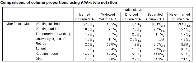 各位,我现在碰到一个比较麻烦的事情,就是在spss中,利用tab能出交叉表,同时还能检验不同列之间的差异性。