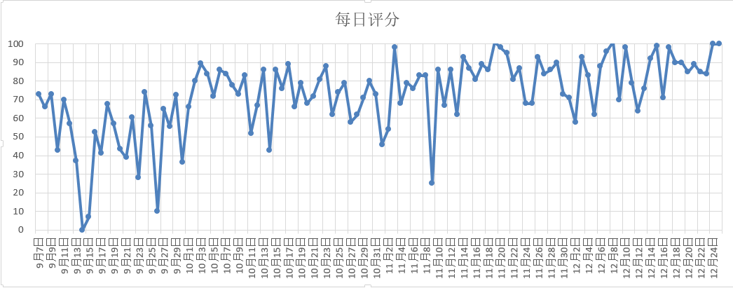 总结完全可以融入每天的分分秒秒。每天早上起来后给自己打个分,每完成一项任务填完一个表格,每天晚上填表也是在总结这一天的情况。上表是我当时总结自己哪些方面需要提高,按照心态15%、身体10%、学习75%三大类下列11小类而制定的。比如说影响最大的番茄,这是因为自己刚开始备考时根本静不下心学习,于是告诉自己每学25分钟算一个番茄钟,循序渐进。你可以直接用上面的表格,毕竟经过我的实践检验。当然每个人情况不一样,你最好还是根据自己的状况来制定选项、确认比例,没人比你自己更了解自己。
