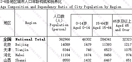 表“2_8_各地区龄构成和抚养比”。全国城市人口才30w+,北京才1.5w,这数据也太小了吧?这是为什么呢?