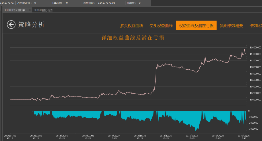function Strategy1(freq)%targetList = traderGetTargetList(); %获取目标资产信息HandleList = traderGetHandleList();%获取账户句柄global record;for k=1:length(targetList); %--------------------仓位、K线、当前bar的提取-----------------------------% %获取当前仓位 [marketposition,~,~]=traderGetAccountPosition(HandleList(1),targetList(k).Market,targetList(k).Code); %策略中每次取数据的长度 lags=121; dlags=31; barnum=traderGetCurrentBar(targetList(k).Market,targetList(k).Code); %数据长度限制 if(barnum<lags) continue; end if(barnum<dlags) continue; end %获取K线数据 [time,open,high,low,close,volume,~,~] = traderGetKData(targetList(k).Market,targetList(k).Code,'min',freq, 0-lags, 0,false,'FWard'); [Dtime,Dopen,Dhigh,Dlow,Dclose,Dvolume,~,~] = traderGetKData(targetList(k).Market,targetList(k).Code,'day',1, 0-dlags, 0,false,'FWard'); if length(close)<lags || length(Dclose)<dlags continue; end; %-------------------------交易逻辑-------------------------------%% TRvalue=TR(close,high,low);% ATR=ma(TRvalue,50);% p=5;% stoplossratio=p*mean(ATR(end-20:end-1))/mean(Dclose(end-20:end-1)); % 止损触发比例 stoplossratio=0.02; stopearnratio=stoplossratio*1.1; % 止盈触发比例 % 未平仓的订单提取 remain_num=find(record.isopen==1); remain.isopen=record.isopen(remain_num); remain.isearn=record.isearn(remain_num); remain.pivotprice=record.pivotprice(remain_num); remain.entrybar=record.entrybar(remain_num); remain.unit=record.unit(remain_num); remain.direction=record.direction(remain_num);% remain.stoplossratio=record.stoplossratio(remain_num);% remain.stopearnratio=record.stopearnratio(remain_num); % 计算购买手数 [ValidCash,MarketCap,OrderFrozen,MarginFrozen,PositionProfit] = traderGetAccountInfo(HandleList(1)); [~,~,Multiple,~,~,~,~,~,~] = traderGetFutureInfo(targetList(k).Market,targetList(k).Code); remain_share=10-length(remain_num); con1=0; if remain_share~=0; con1=1; % 表示仍有可用资金购买 openunit=fix(ValidCash/remain_share/close(end)/Multiple); end; % 判断当前是多头持仓还是空头持仓 posdir=0; if ~isempty(remain.direction) if remain.direction(end)>0 posdir=1; elseif remain.direction(end)<0 posdir=-1; end; end; % 对未平仓的订单进行平仓或者调整止损线 for i=1:length(remain_num) index=remain_num(i); if remain.direction(i)==1 if close(end)<remain.pivotprice(i)-stoplossratio*remain.pivotprice(i) % 触发止损线 orderID3=traderDirectSell(HandleList(1),targetList(k).Market,targetList(k).Code,remain.unit(i),0,'market','sell'); if orderID3==0 continue; end; record.isopen(index)=0; elseif close(end)>remain.pivotprice(i)+stopearnratio*remain.pivotprice(i) % 触发止盈线% record.stoplossratio(index)=(close(end)-record.pivotprice(index))/close(end);% record.stopearnratio(index)=record.stoplossratio(index)*1.1; record.pivotprice(index)=close(end); record.isearn(index)=2; end; elseif remain.direction(i)==-1 if close(end)>remain.pivotprice(i)+stoplossratio*remain.pivotprice(i) % 触发止损线 orderID4=traderDirectBuy(HandleList(1),targetList(k).Market,targetList(k).Code,remain.unit(i),0,'market','buy'); if orderID4==0 continue; end; record.isopen(index)=0; elseif close(end)<remain.pivotprice(i)-stopearnratio*remain.pivotprice(i) % 触发止盈线% record.stoplossratio(index)=(record.pivotprice(index)-close(end))/close(end);% record.stopearnratio(index)=record.stoplossratio(index)*1.1; record.pivotprice(index)=close(end); record.isearn(index)=2; end; end; end; % 入场条件% ma0=ma(close,5); ma1=ma(close,20); std1=stdev(close,20); con2=isempty(find(remain.isearn==1,1)); % 所有头寸都是盈利的才考虑进新的头寸 bcon=close(end)>ma1(end)+2*std1(end) && close(end-1)>ma1(end-1)+2*std1(end-1); scon=close(end)<ma1(end)-2*std1(end) && close(end-1)<ma1(end-1)-2*std1(end-1); buycon=con1 && con2 && bcon && posdir>=0; sellshortcon=con1 && con2 && scon && posdir<=0; %---------------------------入场操作--------------------------------% if buycon orderID1=traderDirectBuy(HandleList(1),targetList(k).Market,targetList(k).Code,openunit,0,'market','buy'); if orderID1==0 continue; end; record.pivotprice=[record.pivotprice,close(end)]; record.isearn=[record.isearn,1]; record.isopen=[record.isopen,1]; record.unit=[record.unit,openunit]; record.entrybar=[record.entrybar,barnum]; record.direction=[record.direction,1];% record.stoplossratio=[record.stoplossratio,stoplossratio];% record.stopearnratio=[record.stopearnratio,stopearnratio]; end; if sellshortcon orderID2=traderDirectSell(HandleList(1),targetList(k).Market,targetList(k).Code,openunit,0,'market','sell'); if orderID2==0 continue; end; record.pivotprice=[record.pivotprice,close(end)]; record.isearn=[record.isearn,1]; record.isopen=[record.isopen,1]; record.unit=[record.unit,openunit]; record.entrybar=[record.entrybar,barnum]; record.direction=[record.direction,-1];% record.stoplossratio=[record.stoplossratio,stoplossratio];% record.stopearnratio=[record.stopearnratio,stopearnratio]; end;endend