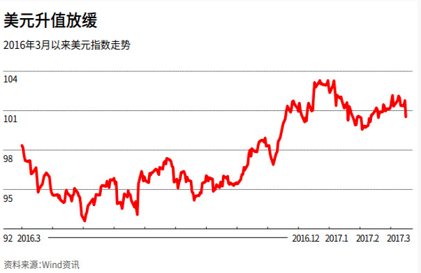 中国方面,2017年经济开局强劲,中国政府设定今年增长目标为6.5%左右。中国人民银行行长周小川在全国“两会”期间称,人民币汇率将基本保持稳定,“有管理的浮动汇率对大家有利”“人民币没有持续贬值的基础”,并建议大家观察美元指数。