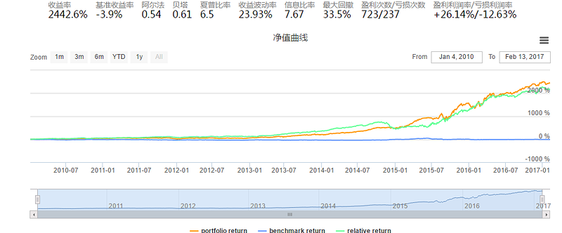 好嘞,策略就完全写好了。我们运行完曲线如下: