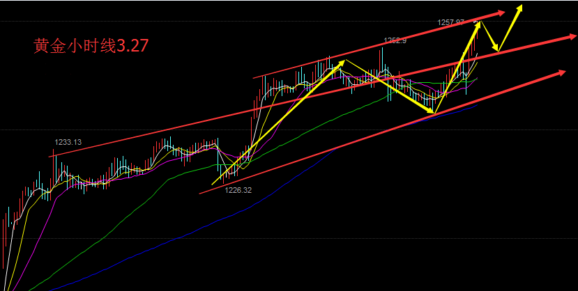 今日开盘金价强势的突破了上周的高点至1258美元附近,短线的强势突破再次的证明了多头的脚步并未终结,同时再一次的带动了短线均线指标上扬,附图指标MACD也呈现二次金叉信号,短线来看,日内价格将有望再度探高,而亚盘在急涨之后,短线将会有回撤,那么我们将重点关注欧盘的走势,若欧盘价格呈现回调,那么美盘时段我们将找机会做多,需要注意的是,前期阶段性高点1263美元一线的阻力情况,而下方在持续走高之后,短线支撑也跟随上移,目前下方支撑关注1245、1250美元位置支撑,整体操作思路低多为主,高位博短空建议笔者艾紫馨实盘中给出。