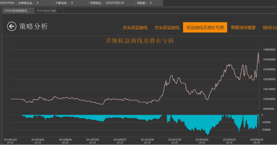 function Strategy1(default_unit,default_exitway,freq)%targetList = traderGetTargetList(); %获取目标资产信息HandleList = traderGetHandleList();%获取账户句柄for k=1:length(targetList); %--------------------仓位、K线、当前bar的提取-----------------------------% %获取当前仓位 [marketposition,~,~]=traderGetAccountPosition(HandleList(1),targetList(k).Market,targetList(k).Code); %策略中每次取数据的长度 lags=80; barnum=traderGetCurrentBar(targetList(k).Market,targetList(k).Code); %数据长度限制 if(barnum<lags) continue; end %获取K线数据 [time,open,high,low,close,volume,turnover,openinterest] = traderGetKData(targetList(k).Market,targetList(k).Code,'min',freq, 0-lags, 0,false,'FWard'); if length(close)<lags continue; end; %-------------------------交易逻辑-------------------------------% %----------入场信号--------------------% [PDIma,NDIma,ADX]=DMI(close,high,low,14,14); TRvalue=TR(close,high,low); ATR=ma(TRvalue,20); ADXma=ma(ADX,18); ma1=ma(close,65); highest=est(high,1); lowest=est(low,-1); buycon=close(end)>ma1(end) && highest(end-1)>ma1(end) && ADXma(end)>20 && high(end)>max(high(end-20:end-2))+0.5*ATR(end); sellshortcon=close(end)<ma1(end) && lowest(end-1)<ma1(end) && ADXma(end)>20 && low(end)<min(low(end-20:end-2))-0.5*ATR(end); sellcon=close(end)<ma1(end); buytocovercon=close(end)>ma1(end); %---------------------------入场操作--------------------------------% if sellcon && marketposition>0 orderID1=traderPositionTo(HandleList(1),targetList(k).Market,targetList(k).Code,0,0,'market','sell'); if orderID1==0 continue; end; end; if buytocovercon && marketposition<0 orderID2=traderPositionTo(HandleList(1),targetList(k).Market,targetList(k).Code,0,0,'market','sell'); if orderID2==0 continue; end; end; if buycon && marketposition==0 buyunit=default_unit; orderID3=traderBuy(HandleList(1),targetList(k).Market,targetList(k).Code,buyunit,0,'market','buy'); if orderID3==0 continue; end; end; if sellshortcon && marketposition==0 sellshortunit=default_unit; orderID4=traderSellShort(HandleList(1),targetList(k).Market,targetList(k).Code,sellshortunit,0,'market','sell'); if orderID4==0 continue; end; end; endend