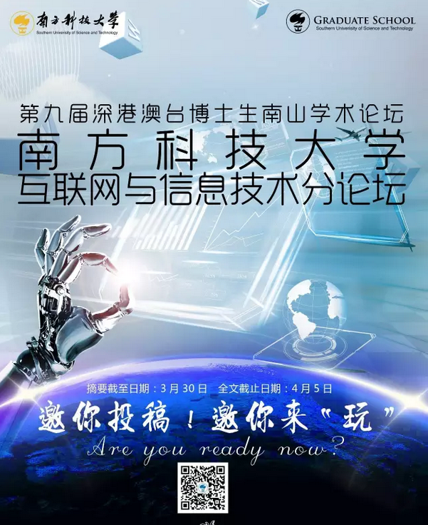 强烈邀你投稿!南方科技大学承办第九届深港澳台博士生南山学术论坛——“互联网与信息技术”分论坛!邀你来玩!