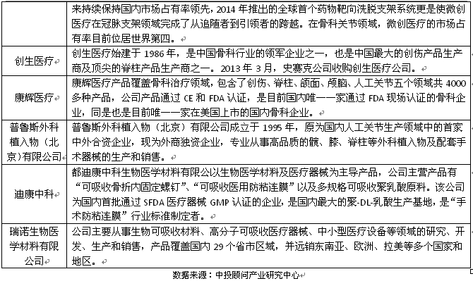中投顾问发布的《2017-2021年中国生物医用材料行业投资分析及前景预测报告》资料显示:我国已经形成了长三角、珠三角和京津环渤海湾三大医疗器械产业聚集区。其中珠三角以研发生产综合性高技术医疗器械为主,包括有源植入性微电子器械、动物源生物材料和人工器官等;长三角主要生产开发以出口为导向的中小型医疗器械,特别是骨科器械和牙科器械等;环渤海湾地区主要从事高技术数字化医疗器械的研发生产,在医用高分子耗材、医用金属及植入器械等方面具有优势。此外成都–重庆地区是新兴的产业集聚区,在组织诱导性材料、表面改性植入器械以及采血、储血(液)和输血器械方面具有优势。