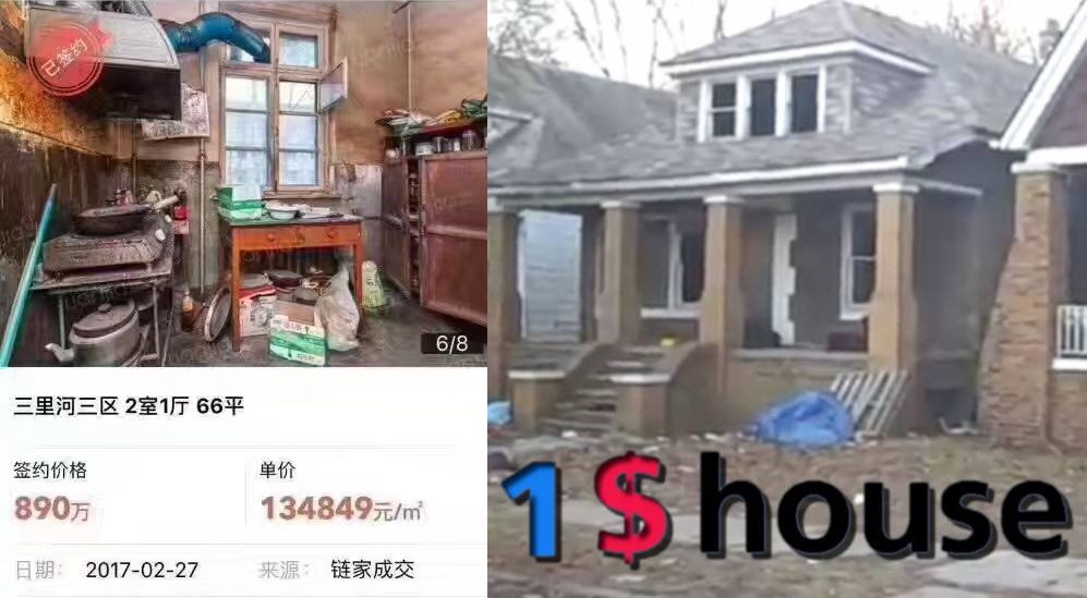 而中国的房价,里面已经包含了向政府买来的70年土地使用权,房屋造价所占的比重是很低的。所以某些地方甚至可以出现“面粉贵过面包”的现象。所以中美两国的房价构成是完全不同的。