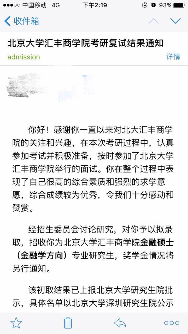 lonely_runner 发表于 2017-3-29 14:38 今天收到北大汇丰的拟录取通知书,我和同学在死亡电话日之后就着手编写我们自己的经验帖,现在成尘埃落定就 ...