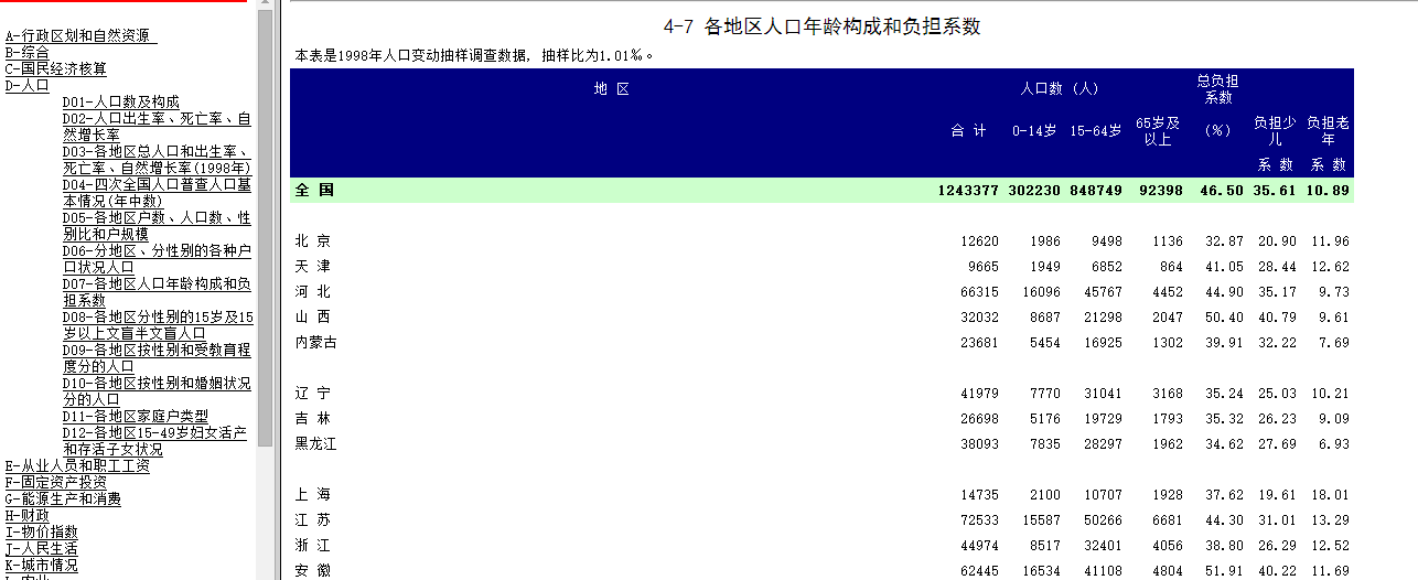 1998-2015年31省市老龄化数据