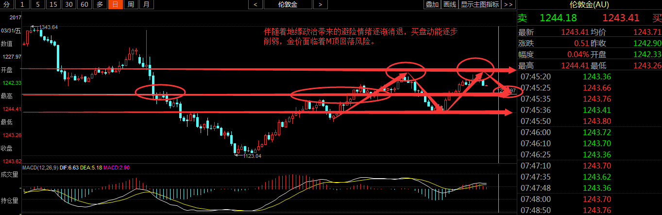 1242一线亚欧盘可以博一次短线反弹多单,止损3美金,目标1248