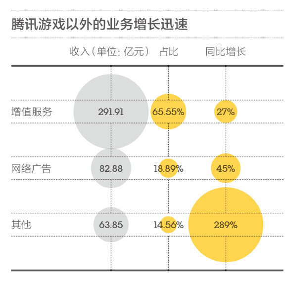 然而,在整体营收增长的大背景下,游戏业务的营收占比逐季度下降反而可能更值得腾讯高兴,因为这意味着它终于找到其他可以将海量用户变现的方式了。