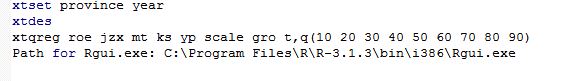 而且help xtqreg发现它给的例子里R的路径是gobal Rterm_path:..................Rterm.exe这样的,但是我安装的是Rgui,这样的话,是不是不能用例子中的格式?