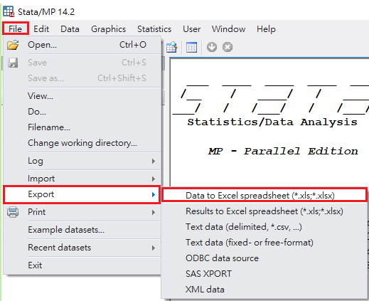 清欢半亩 发表于 2017-7-13 15:57 您好,我用的也是stata14,请问怎么把它导成excel格式呢?其实最后是想要放到spss里面的,不知您解决了没有 ...