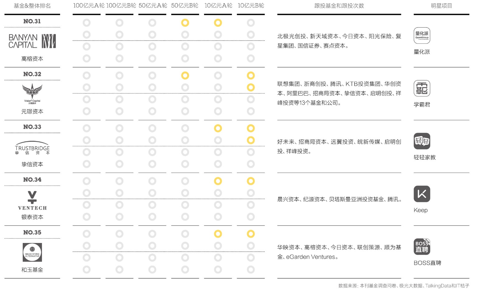 当然,也正是因为将所投公司对公司人的影响力视为很重要的维度,我们在独角兽的名单中剔除了很多B2B公司和一些缺少创新的行业,这可能会影响到很多基金的最终排名。