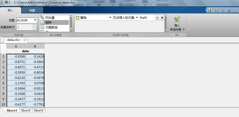 3.之后点开“multivariate”文件夹中的“bekk”code,在左侧窗口工作区中导入数据,数据要以矩阵的形式导入。
