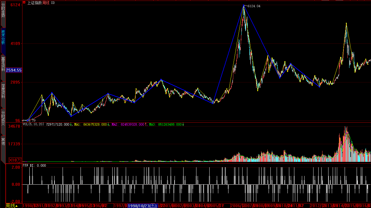 本文中先和大家分享一下该版本缠论公式对上证指数的缠图,供大家学习参考,有什么问题,大家可以在文章后留言,后续等版本功能基本完善之后,会提供相应的dll文件和大家分享。