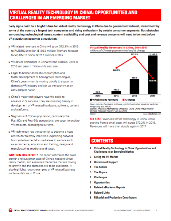 eMarketer Virtual Reality Technology in China 中国虚拟现实技术机遇和挑战