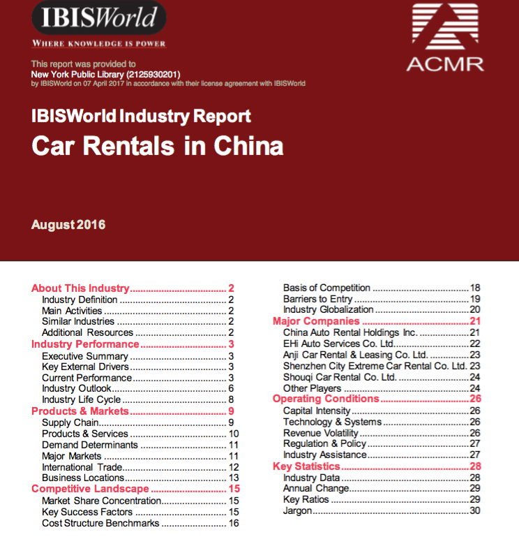 IBISWorld Car Rentals in China 中国租车行业英文分析报告