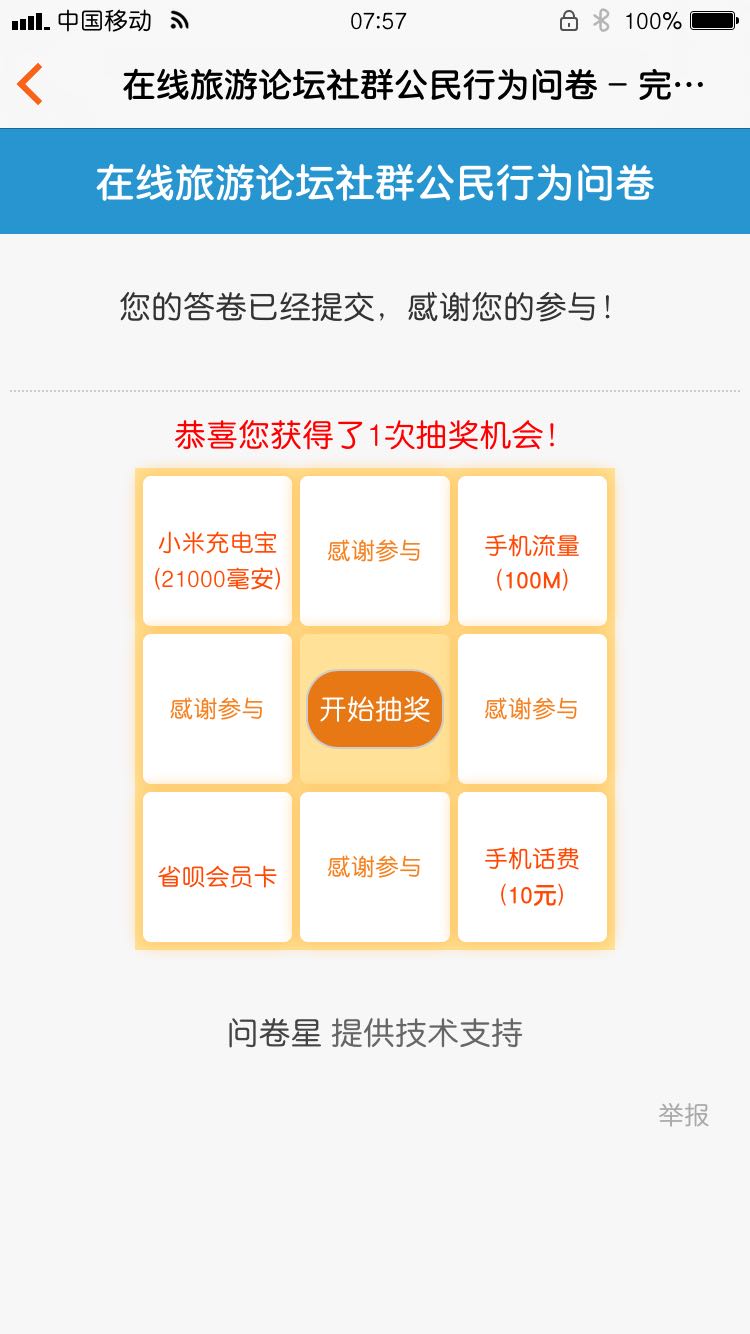问卷填写成功
