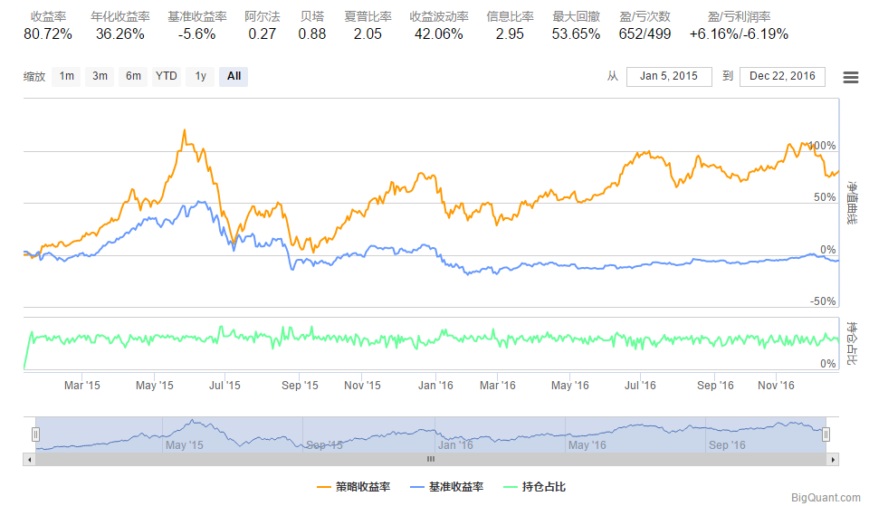 用户小a从事量化投资快三年了,在我们的平台上,做出了非常漂亮的结果,符合他过去的经验逻辑,但效果远超过自己过去的成果;后来 他随便选了一个因子——上市天数,最后发现该因子开发的策略效果很好。