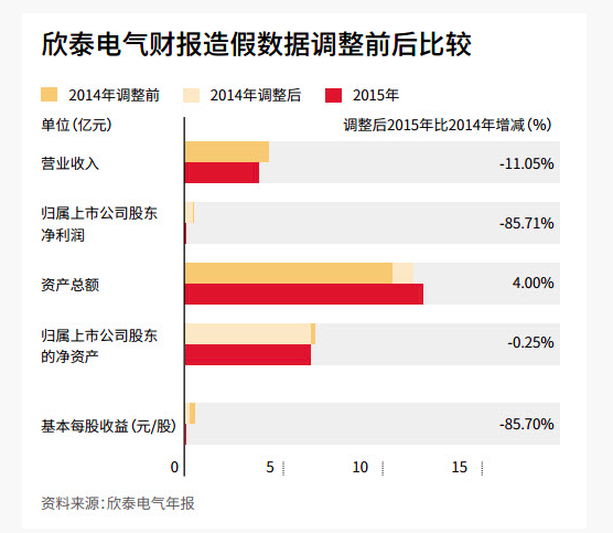 欣泰电气过会后,各种质疑其业绩的报道不断见诸媒体。2015年5月,证监会在例行检查中发现了欣泰电气造假的蛛丝马迹,随即展开一年的调查,最终获得完整的造假证据。