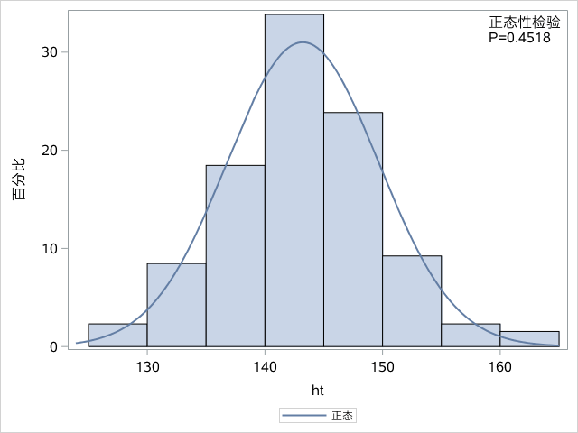 代码前面通过output语句将univariate过程计算出的正态性检验P值导入到变量“probnht”中。