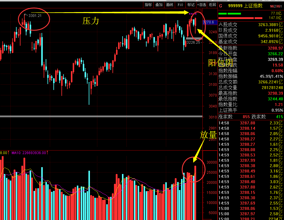 指数早盘冲高后震荡回落,午后指数创出新低,在银行的护盘下,港口军工逆势突起,市场被压抑的做多情绪得到报复性宣泄,题材热点四处开花,量能迅速放大,两市涨停票超过80多只!随着大盘强势阳包阴完成深V反转。但指数目前已经接近3300点整数关口,能否突破尚未可知,即便能够突破,前面3100点,3200点都形成了不断反复,个股仍然注意风险的存在,只有指数完全有效站上,后市才会看涨一线,目前操作仍然建议逢高减仓。