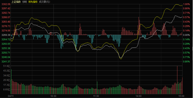 4月11日消息,早盘两市小幅低开便再度上行,沪指在3280一带遇阻回落翻绿,创业板指数回抽60日线遇阻回落,午后两市继续探底回升,强势翻红。至今日收盘,两市双双收长脚阳线,沪指较前一交易日放量,创业板较前一交易日缩量。
