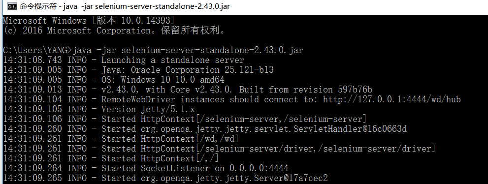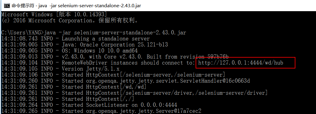 在终端启动:java -jar selenium-server-standalone-2.43.0.jar
