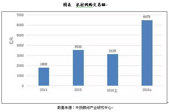 中投顾问发布的《2017-2021年中国农村电商市场深度调研及投资前景预测报告》显示,2015年农村网购市场规模达3530亿元,同比增长96%。2016年上半年农村网购市场规模达3120亿元。