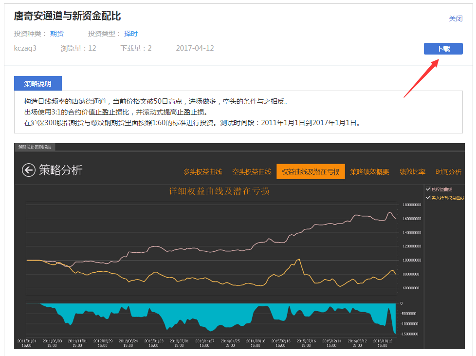 在沪深300股指期货与螺纹钢期货里面按照1:60的标准进行投资。测试时间段:2011年1月1日到2017年1月1日。