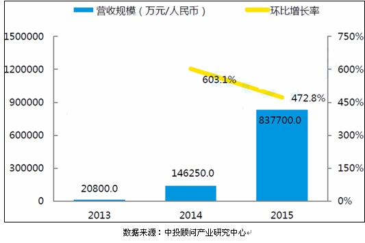 中投顾问发布的《2017-2021年中国农村电商市场深度调研及投资前景预测报告》显示,截止至2015年底,中国农业电商市场融资金额为837700万元,较2014年增加了691450万元,环比增长率为472.8%;2014年中国农业电商市场融资金额为146250万元,较2013年增加了125450万元,环比增长率为603.1%。
