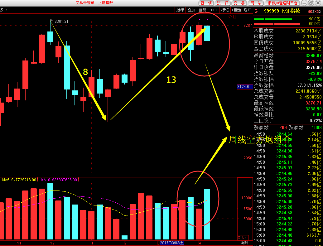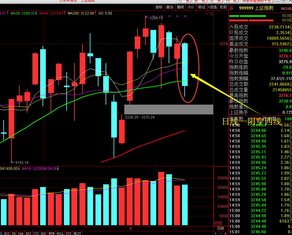 受外盘影响,指数开盘后一路震荡下行,除了黄金板块避险情绪外,个股闪崩频现,粤港澳板块不仅没有接力雄安,反而两市跌幅第一,令人大跌眼镜!日线级别构成一阴穿四线形态,周线级别构成空方炮K线组合,后市看跌,并且谨防中期调整的来临,前期一直建议大家逢高出局,至少也要减仓,现在看来的确是对的,随着周边环境不平静,地缘政治十分敏感之际,目前个股操作上注意做好防御,不建议开新仓。