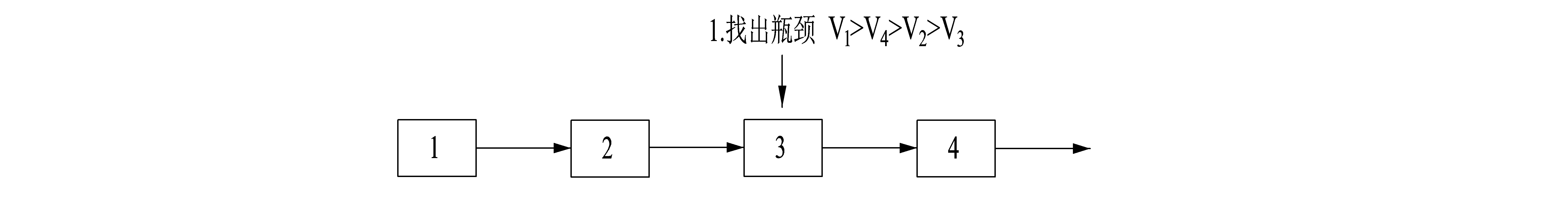 瓶颈是生产速度最慢的工序,找到速度最慢的流程也就找到了瓶颈。也可以通过现象发现瓶颈最慢的工序,如待加工在制品最多的流程,被催货最多的工序,加班最严重的工序。下列流程中,工序1的速度大于工序4的速度,工序4的速度大于工序2的速度,工序2的速度大于工序3的速度,所以工序3就是这个系统的瓶颈。