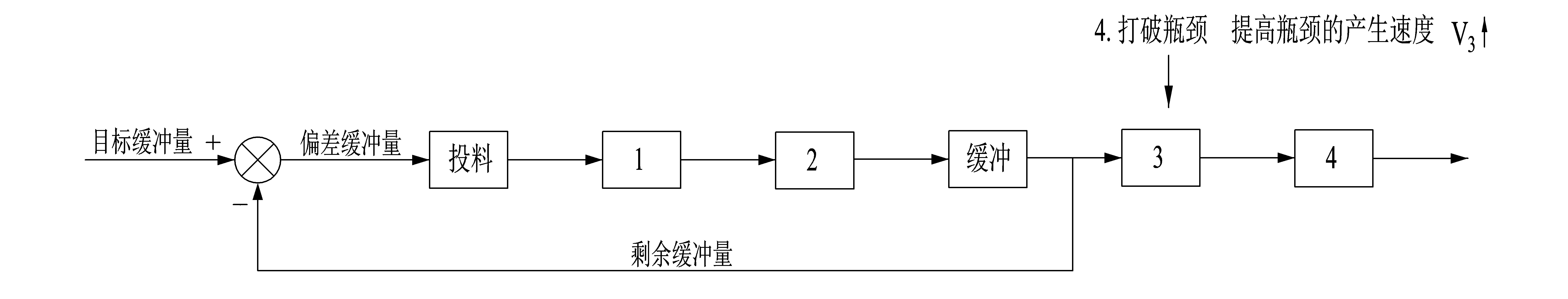 如果在制品的数量为零,并且原缓冲量等于目标缓冲量,那么偏差缓冲量就等于产出品消耗的缓冲量。即投料的平均速度与系统瓶颈的产出速度应该相等。
