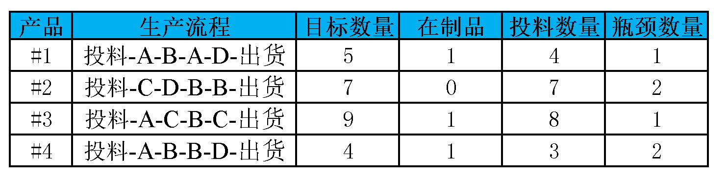 根据TOC产出利润最大化,算出来每一种产品需要生产的数量,由于3种产品有在制品,所以需要分别减去在制品的数量,获得投料数量。