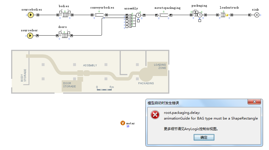 由于是初学者,我在参考一个教程(韩鹏的anylogic建模仿真),练习它里面的一个题目时,碰到了下面图片的问题,被困扰了好久,但不知道怎么解决,求各位解答。