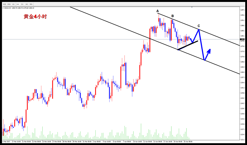 如图,金价暂时还是处于下降通道之内,离上下的空间都有一定的距离,而昨天安排1281-82的空单也可以说是最高点的空,一共有一次到了1276-77的区域,只是利润空间比较小而已,最后选择了离场,而今天上方的压力稍作调整,放在1285-86一线即可,反弹之后依托下降通道再空黄金,必定,日线级别来看反弹就是诱多,见高就空,所以,防守的点在1293一线。
