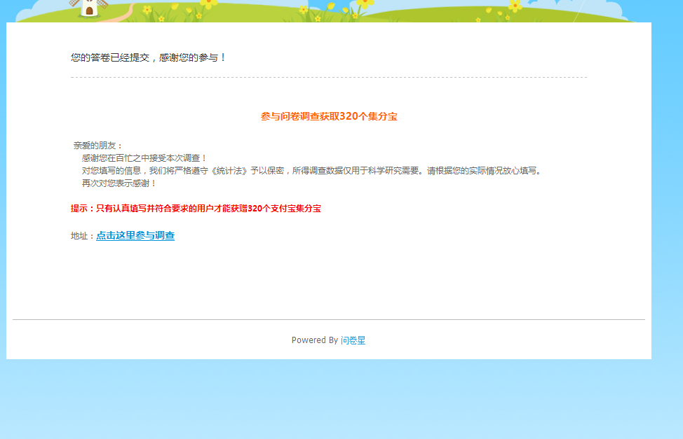 mengjinmiao 发表于 2017-4-22 16:48 求填问卷:30币每份问卷链接:https://sojump.com/jq/13538546.aspx 填写要求[ ...
