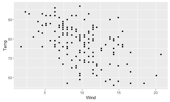 > ggplot(airquality,aes(Wind,Temp))+