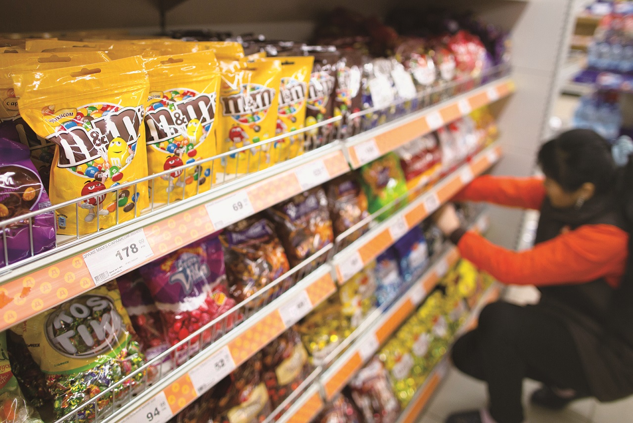 这些陈列决策的背后当然有数据的支持。比如玛氏就发现,如果实行不同品种重叠陈列,将褐色包装的M&M's巧克力豆和黄色包装的巧克力豆交叉、混合摆放,有可能会损失16%的销售。宝洁(中国)营销有限公司零售价值创新总监张莹也告诉《第一财经周刊》,“消费者的视线不容易被横向的色块吸引,但对纵向色块敏感,这正是过去商品倾向于竖列摆放的原因。”