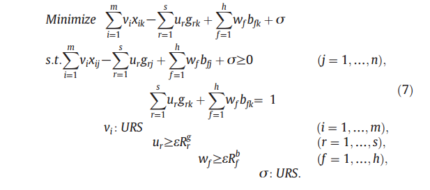 (6)是DEA模型,(7)是相应的对偶模型。请问下这是个什么DEA模型?我应该用什么软件来求解这种模型??这是Toshiyuki Sueyoshi 论文中使用到的模型。请大家帮我看看。