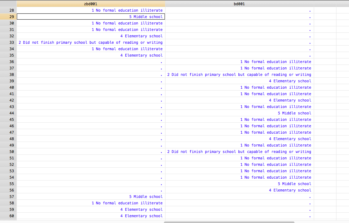 replace new_variable=bd001 if zbd001==.
