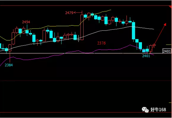 从1小时K线看,BOLL收紧喇叭口,短期进入箱体震荡行情之中。外加需求疲软,短期难有大幅上攻,而2325附近现基本上已经形成下方大支撑,建议2330-2420区间操作即可。2420附近可做空,止盈于2350附近,止损于2440附近。回撤至2330附近,可小仓位搏反弹,止盈于2380附近,止损于2315附近。
