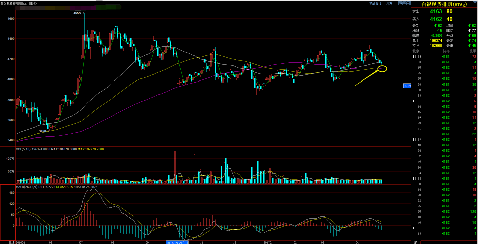 华通现货白银周四(4月27日)早盘在4160附近徘徊。周三(4月26日)因美国总统特朗普提议下调美国企业税后,银价扩大跌幅,并触及4145。周四投资者应关注美国耐用品订单以及初请失业金等数据,同时还有欧洲央行的利率决议。