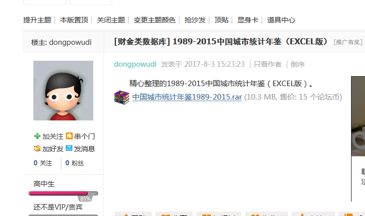 flowerone 发表于 2017-8-21 11:51 https://bbs.pinggu.org/thread-5899220-1-1.html 只需要15个论坛币,人家还整理成Excel 的。很好用